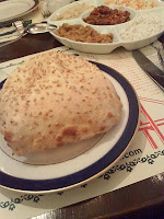 料理はたとえば、ケバブを食べるときによく見られるこういう焼きたてパンを前菜と一緒に食べました。フワフワしていて、とってもおいしい!