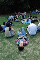 LunchTrip後は歩いて3分の新宿御苑へ。真っ青な青空の中、みんなで輪になってのんびりしました。